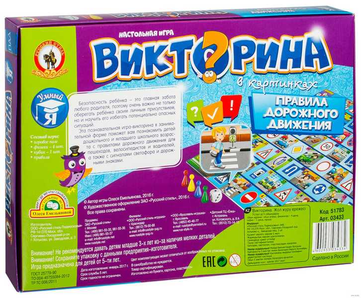 Игра настольная Русский стиль для детей Викторина. Правила дорожного движения, картонная коробка, 5+ арт.03433