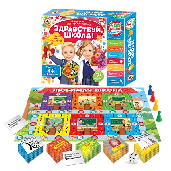 Игра настольная Русский стиль Викторина для первоклассника.Здравствуй,школа! Подарочная 7в1, карт.кор,7+ арт.03489
