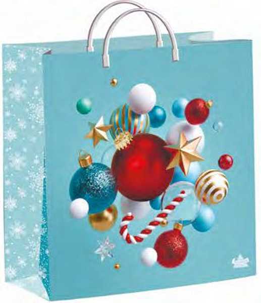 Мешок новогодний 26х24х9см мягкий пластик 140мкм ламинированный с пластиковой ручкой, Шарики с карамелью арт.н00206033