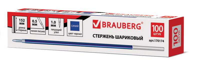 Стержень BRAUBERG 152мм/1.0мм, синий арт.170174