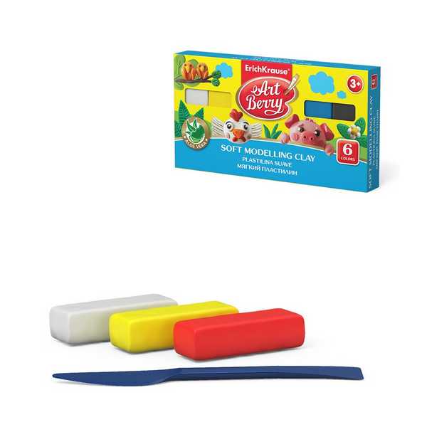 Пластилин ArtBerry с Алоэ Вера 06 цв. 120г, со стеком, мягкий восковый арт.41780